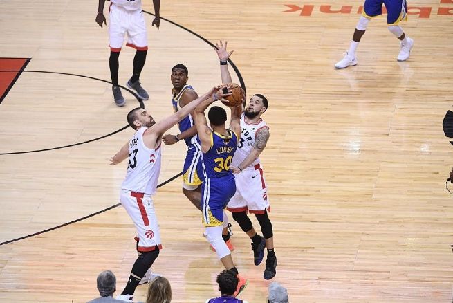 有些球隊甚至?xí)趲炖餆o球跑動時就派出兩人阻止他接球。2019年季后賽對上猛龍時,庫里無球狀態(tài)的包夾比例也高達(dá)41%。