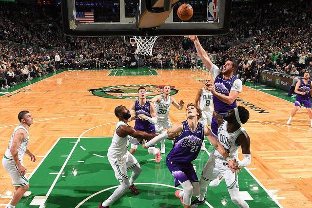 波士頓北岸花園,猶他爵士與波士頓凱爾特人激戰(zhàn)48分鐘。杰倫-布朗三分線外9投0中卻仍砍下36分,對(duì)飆基恩特-喬治與馬爾卡寧。